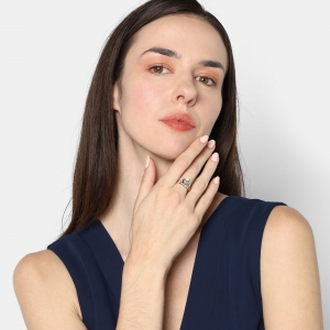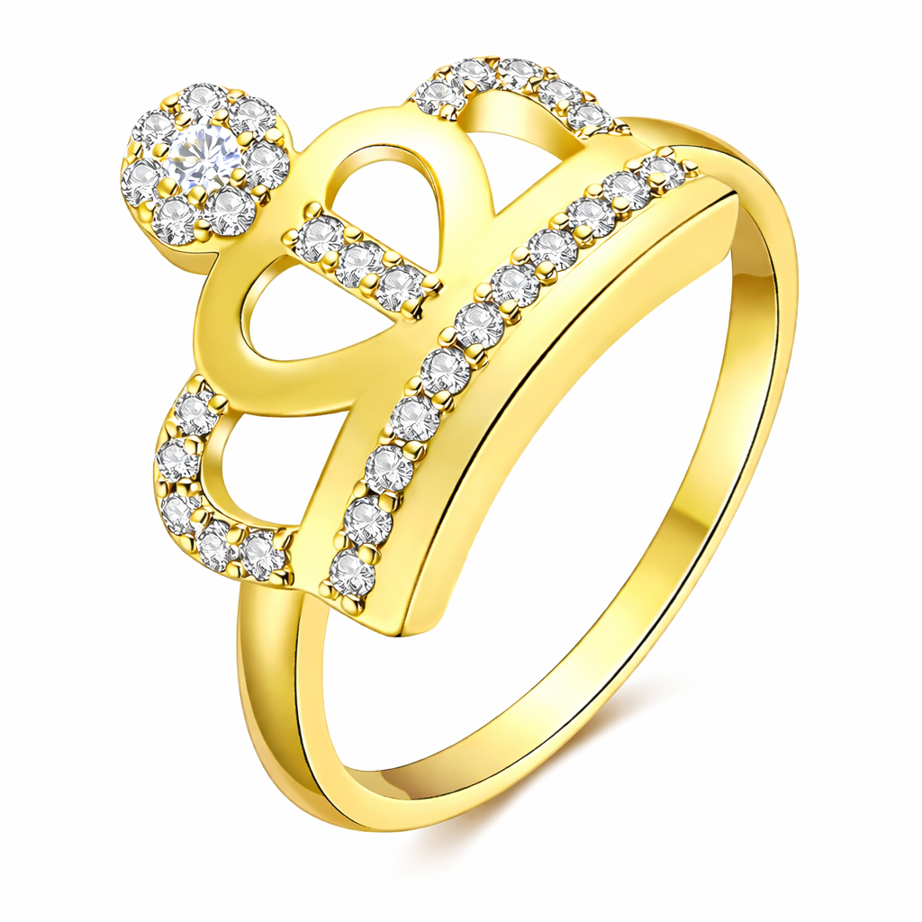 Anillo en baño de oro amarillo de 18 quilates, diseño de corona con incrustaciones de cristales en color blanco.