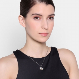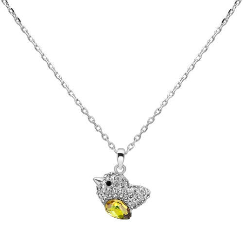 Tierno Dije en ba�o de oro blanco de 18 quilates, dise�o de ave con incrustcionesen color blanco y tornasol.