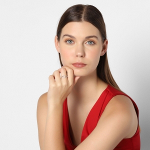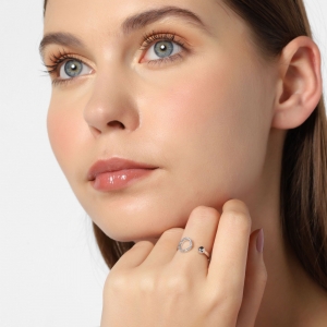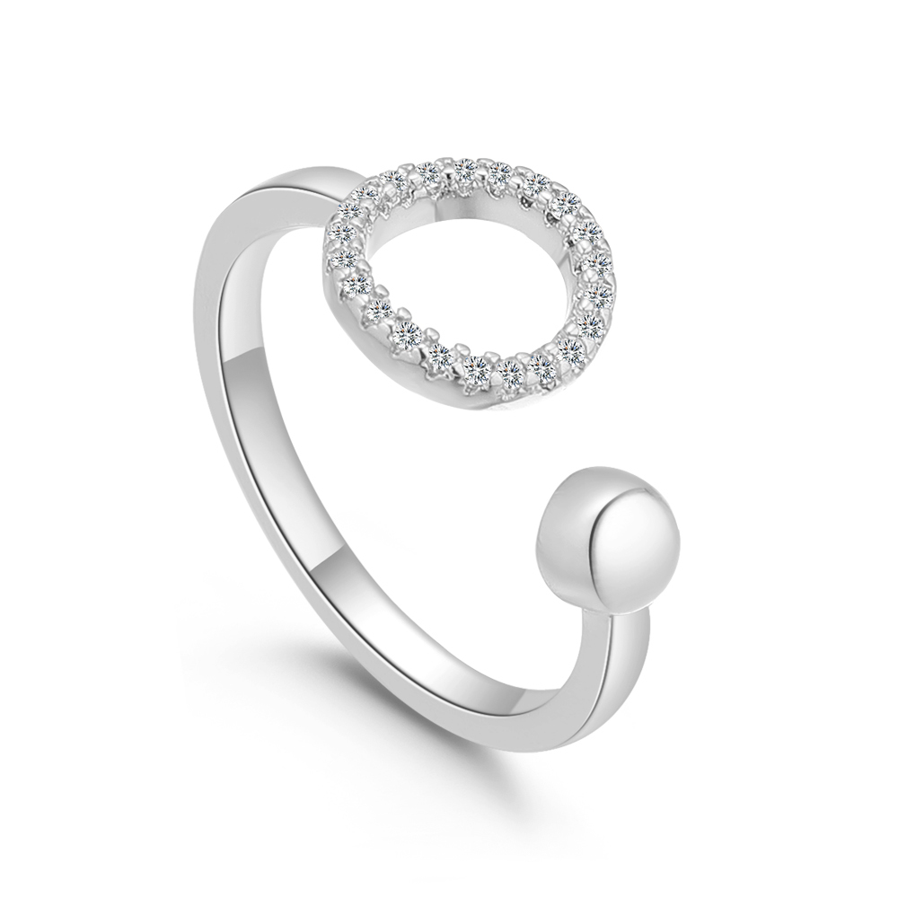 Original anillo en baño de oro blanco de 18 quilates , diseño de aro con incrustaciones de cristales blancos.