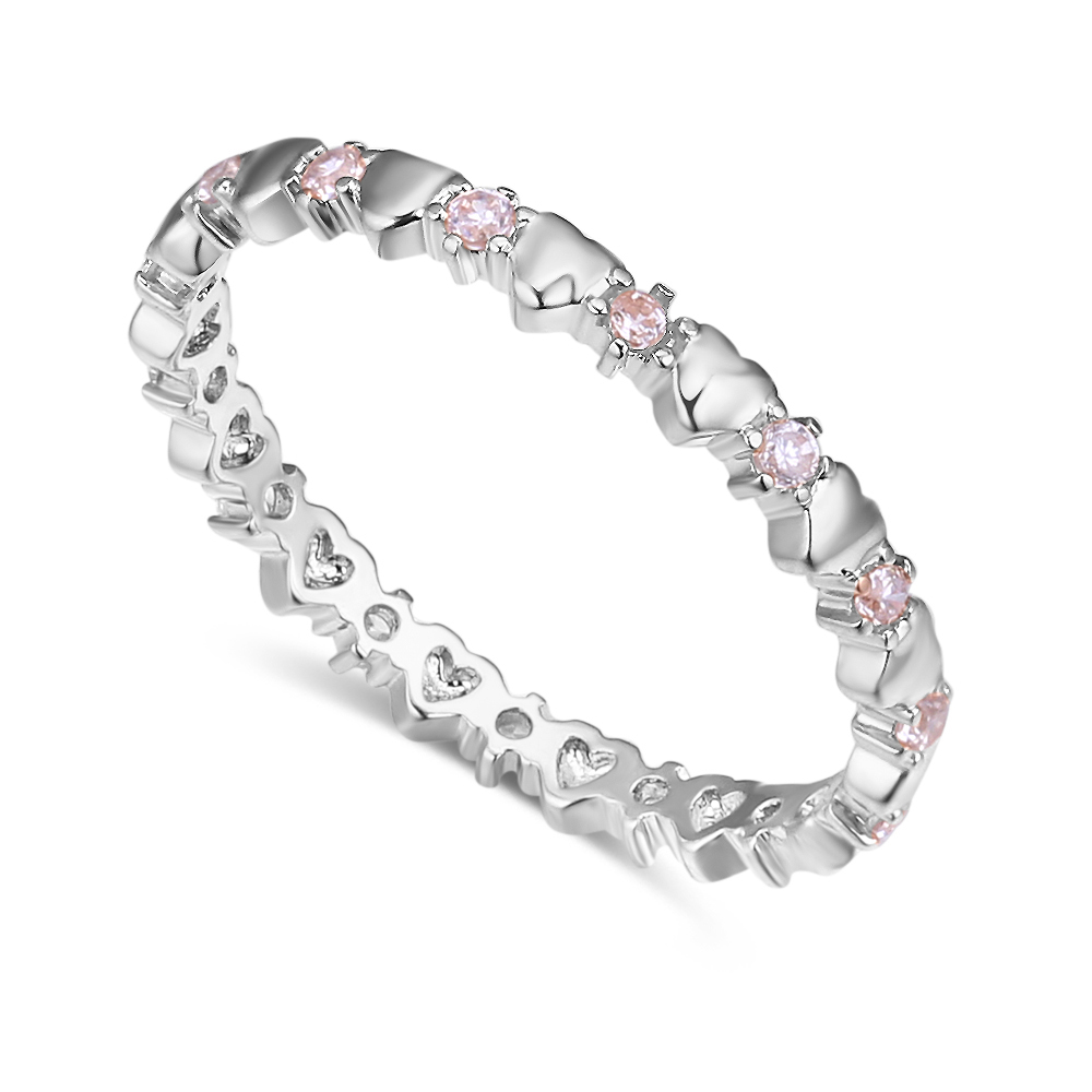 Fino anillo en baño de oro blanco de 18 quilates , diseño de corazoncitos, con incrustaciones de cristales blancos.