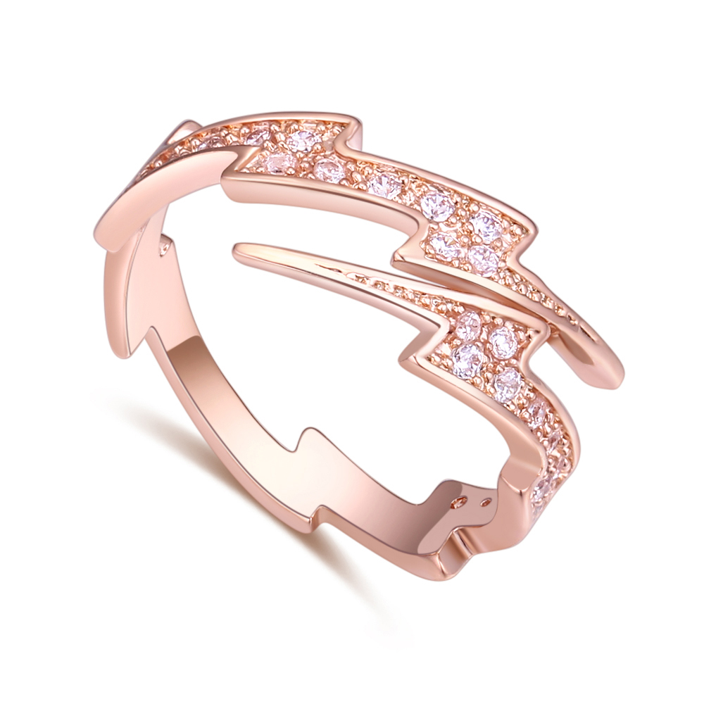 Moderno anillo en baño de oro rosa de 18 quilates , diseño de rayos, con incrustaciones de cristales blancos.