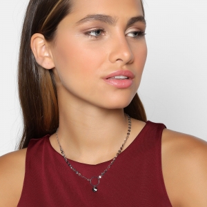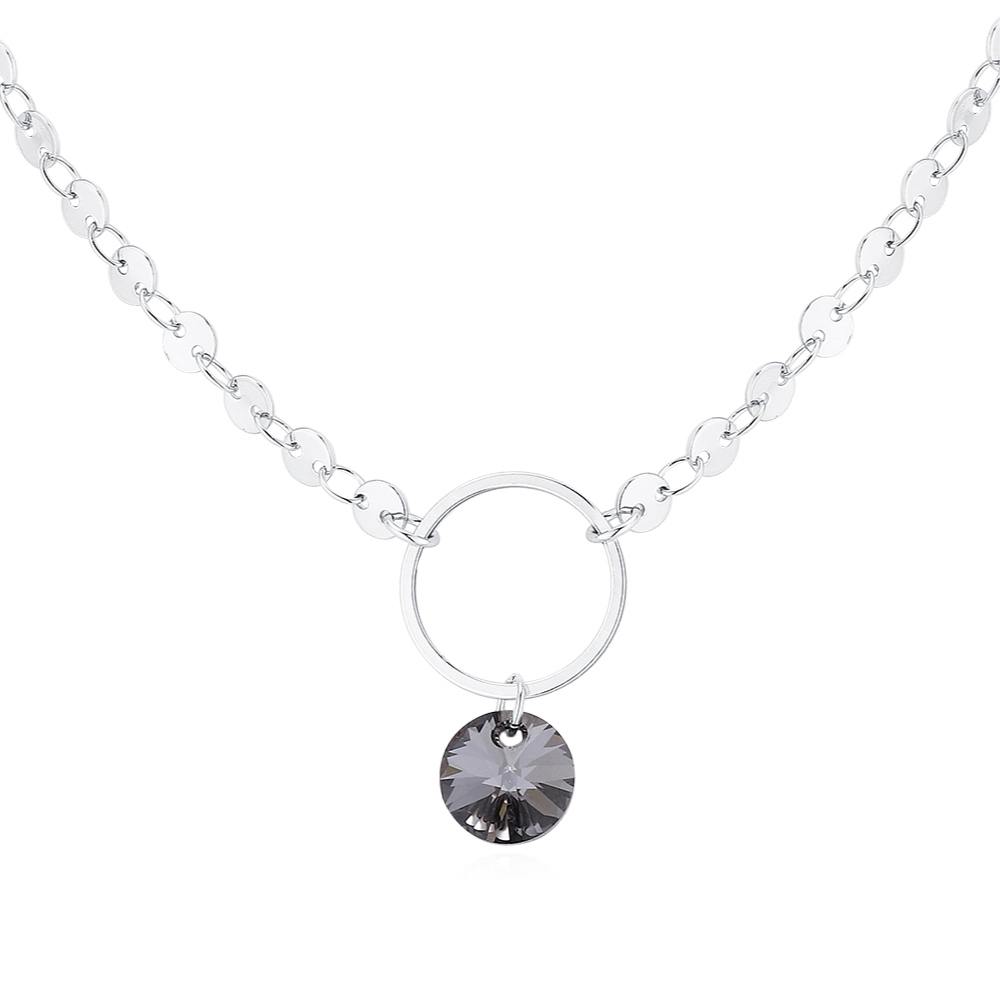 Original collar en baño de oro blanco de 18 quilates, diseño de aro, con cristal humo corte redondo.