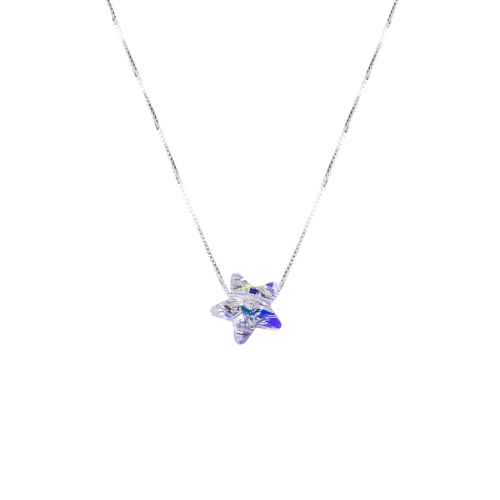Tierno collar en baño de oro amarillo de 18 quilates, diseño de estrella, en cristal tornasol.
