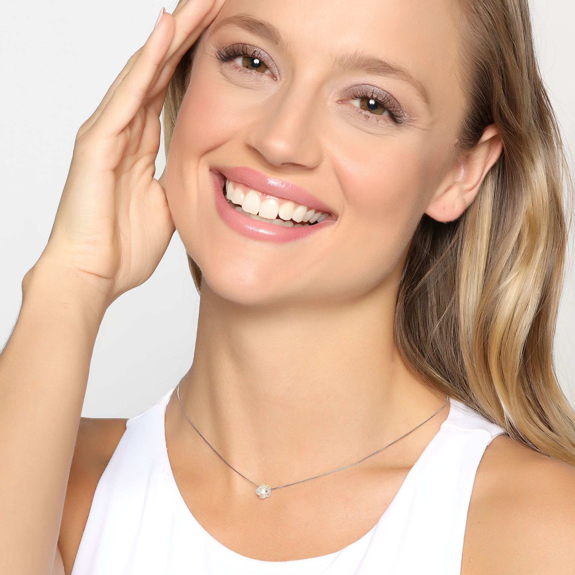 Tierno collar en baño de oro amarillo de 18 quilates, diseño de flor, en cristal tornasol.