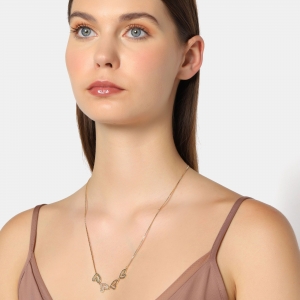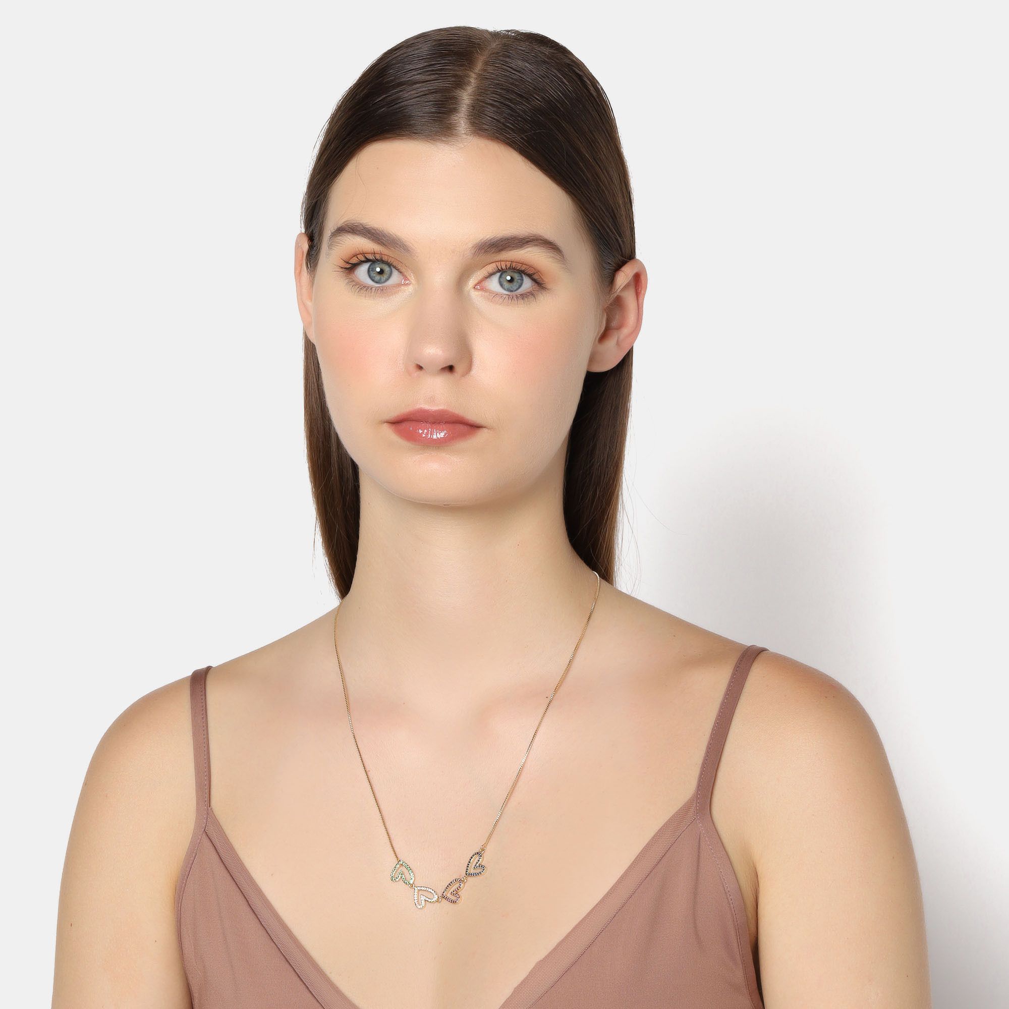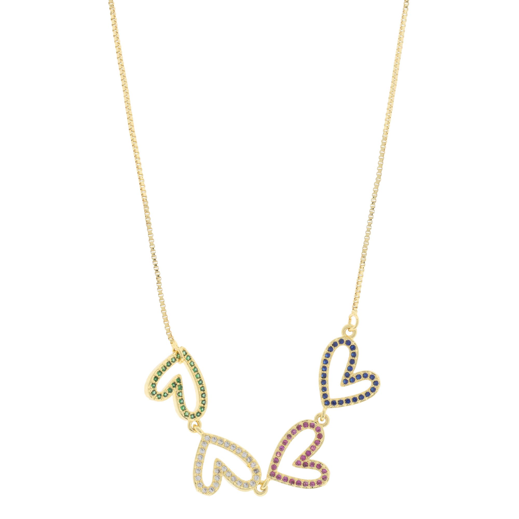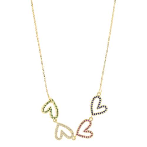 Collar en acero de titanio color amarillo con detalle de corazones e incrustaciones de cristales de colores.