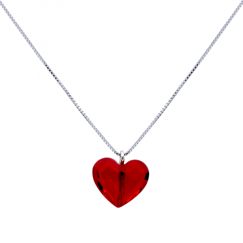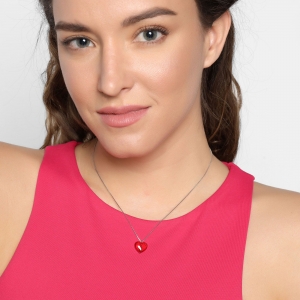Bello dije con cadena en baño de oro blanco de 18 quilates, diseño de corazón en cristal rojo.