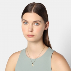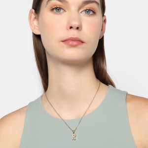 Dije con cadena en acero de titanio color amarillo, diseño de letra "R", con placa de madre perla.