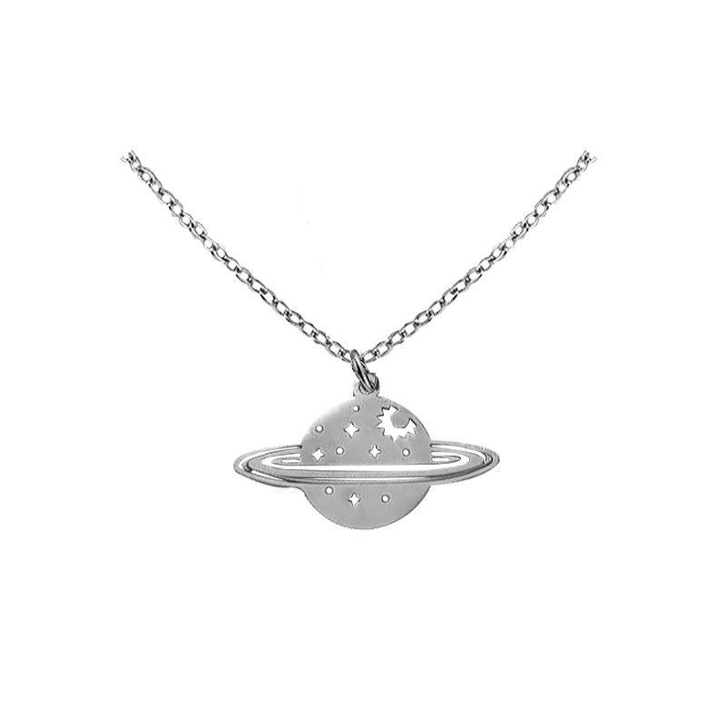 Dije de acero inoxidable en tono blanco, diseño de planeta.
