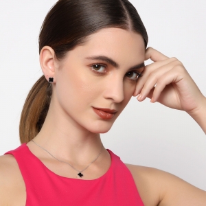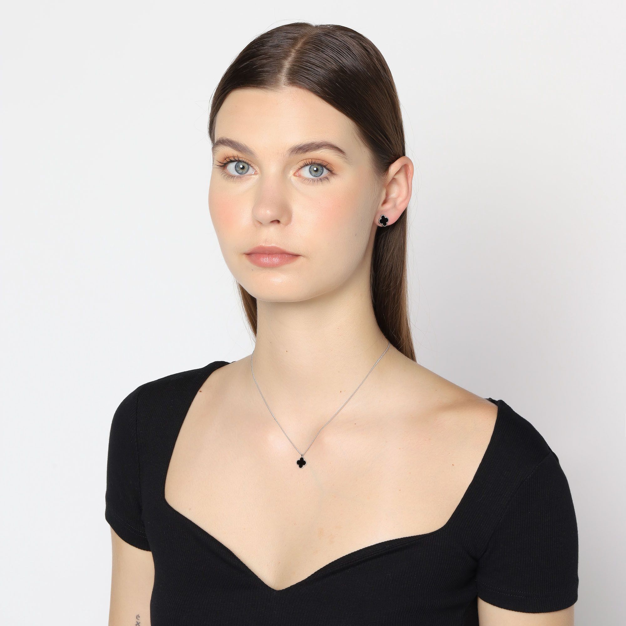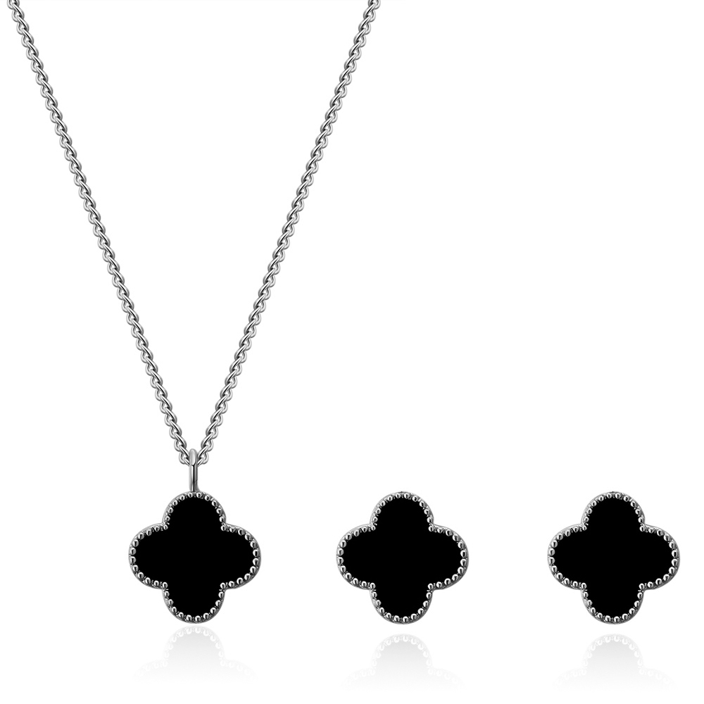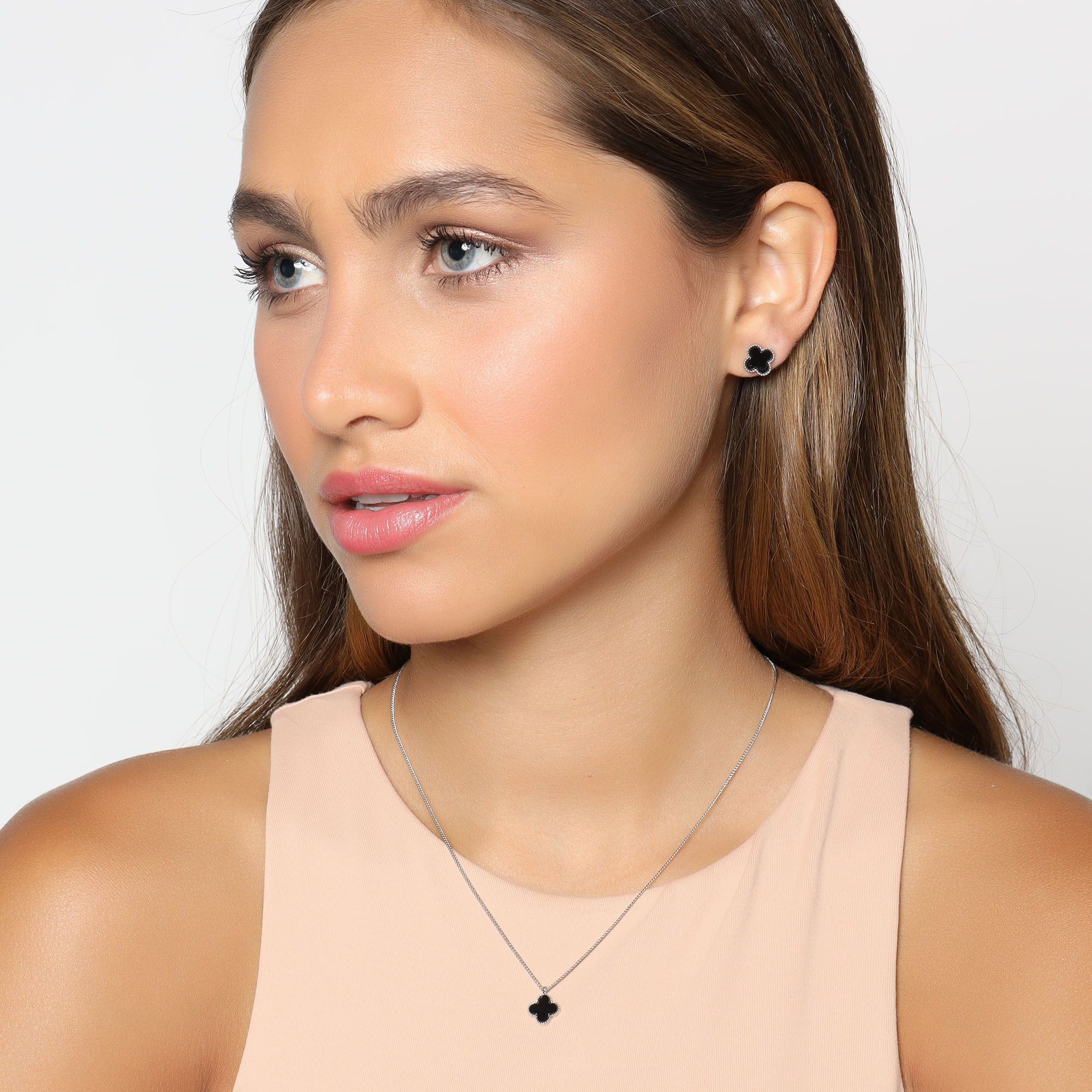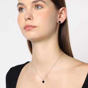 blanco de 18 quilates, diseño de flores en esmaltado color negro.