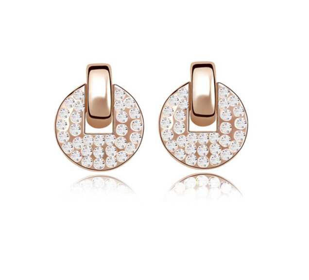 Aretes en baño de oro amarillo de 18 quilates, con diseño de círculo e incrustación de cristales en color blanco.