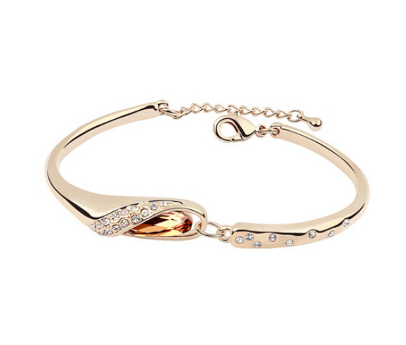 Brazalete en baño de oro amarillo de 18 quilates, lindo diseño, con cristal ámbar corte oval e incrustaciones de cristales blancos.