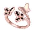 Elegante anillo en baño de oro rosa de 18 quilates, con diseño de mariposas e incrustación de cristales en color negro.