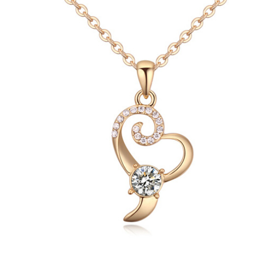 Dije con cadena en baño de oro amarillo de 18 quilates, diseño de corazón con cristal blanco corte brillante e incrustaciones de cristales blancos.