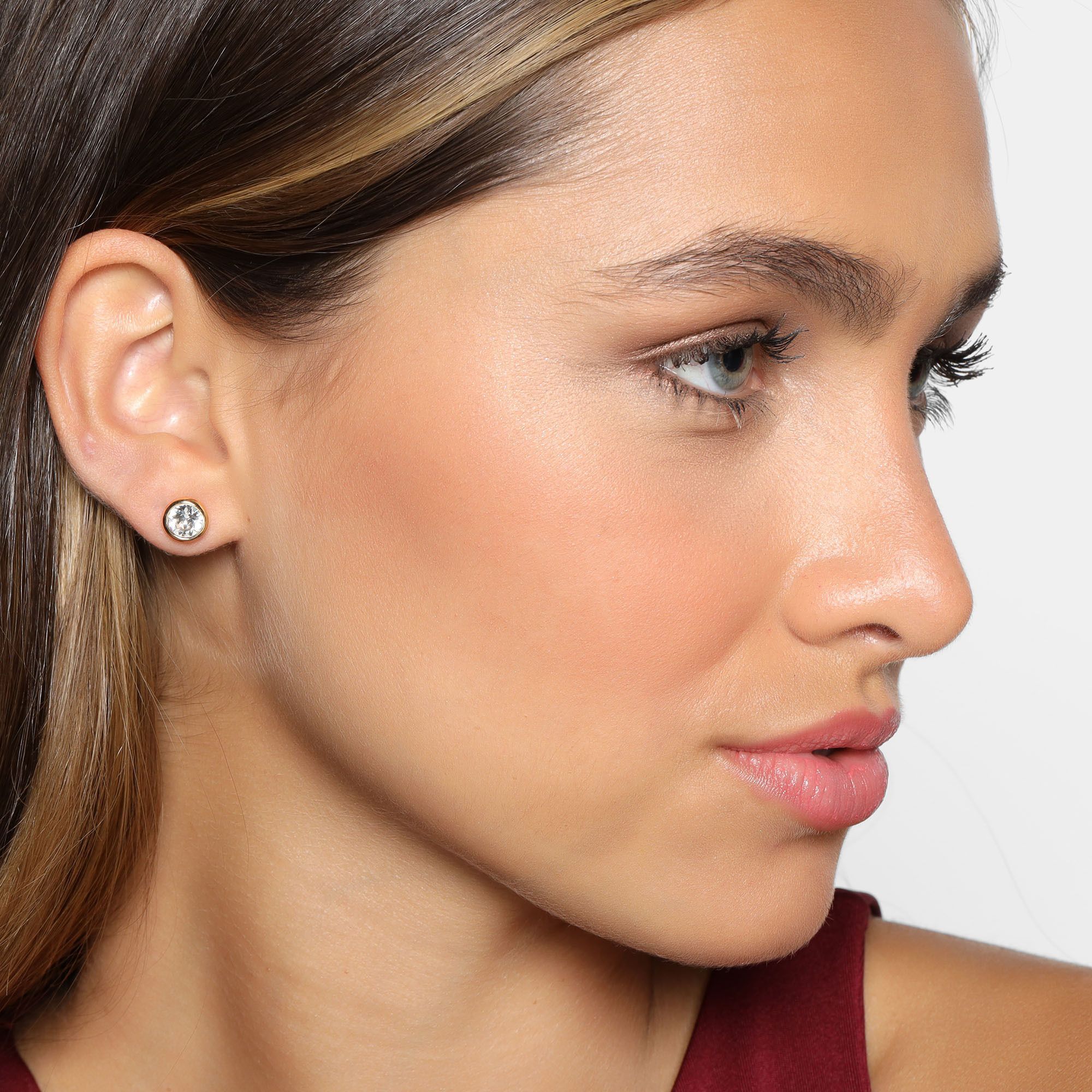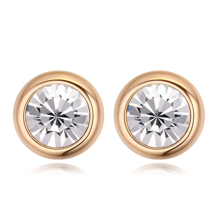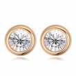 Lindos Aretes, en baño de oro amarillo de 18 quilates, diseño de círculo, con incrustación de cristal en color blanco.