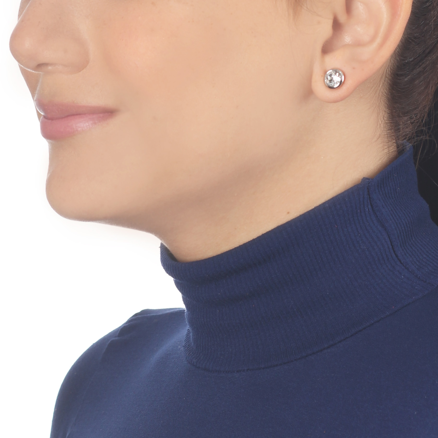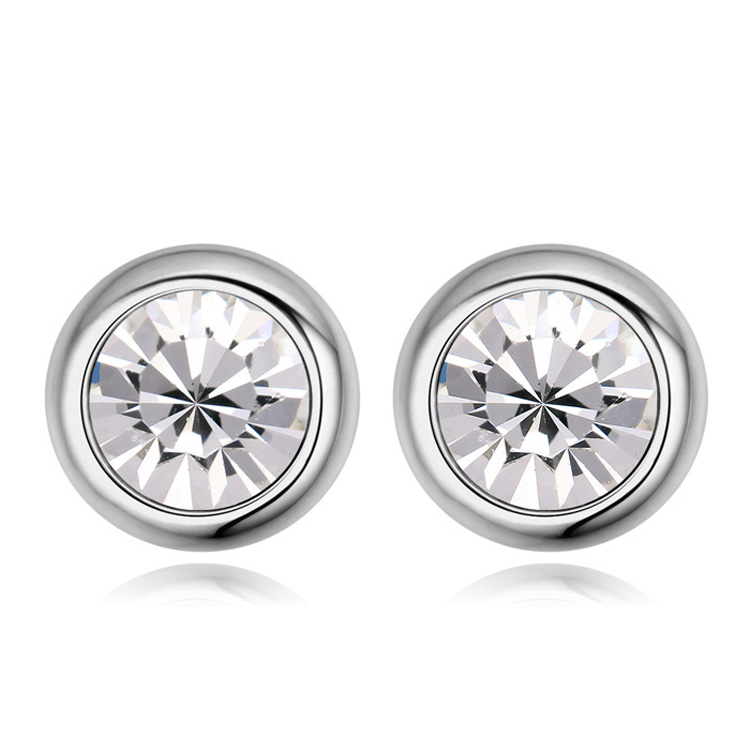 Lindos Aretes, en baño de oro blanco de 18 quilates, diseño de círculo, con incrustación de cristal en color blanco.