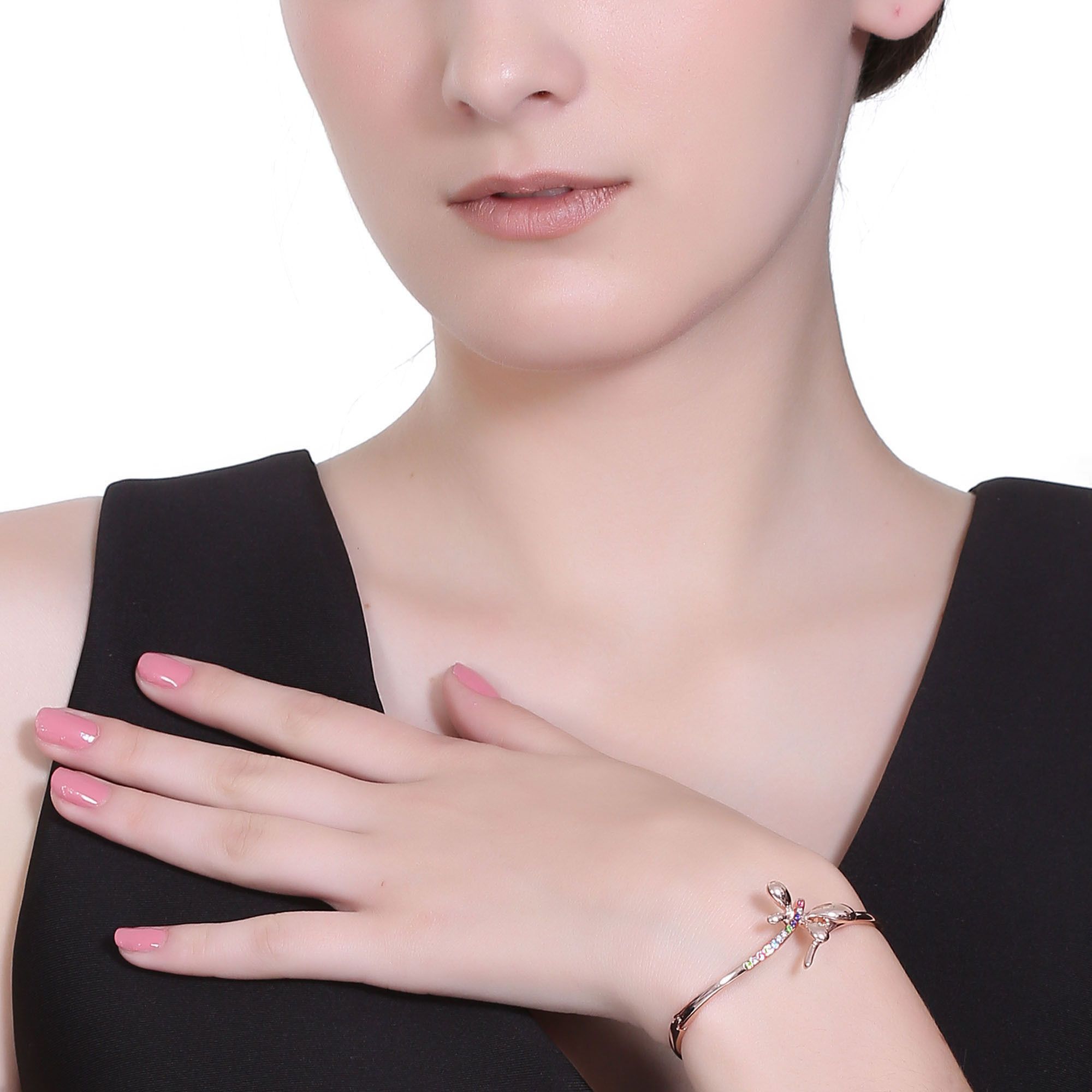 Brazalete en baño de oro rosa de 18 quilates, diseño de mariposa, con incrustaciones de cristales multicolor.