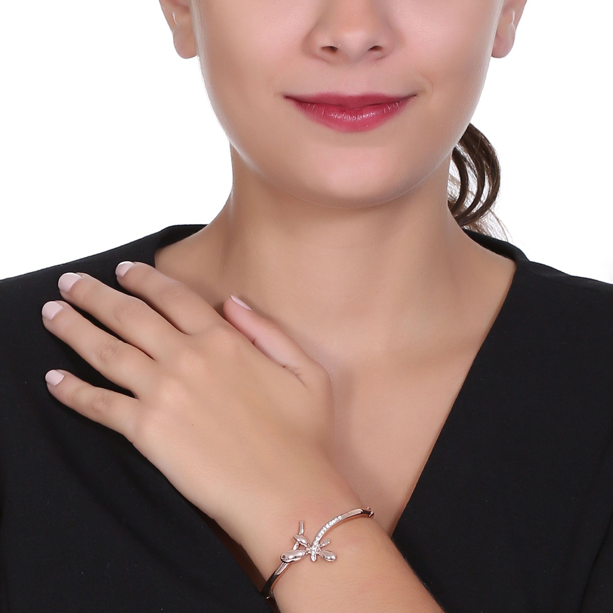 Brazalete en baño de oro rosa de 18 quilates, diseño de mariposa, con incrustación de cristales en color blanco.