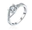 Anillo en baño de oro blanco de 18 quilates, fino diseño entrelazado, con cristal blanco corte brillante e incrustaciones de cristales en color blanco.