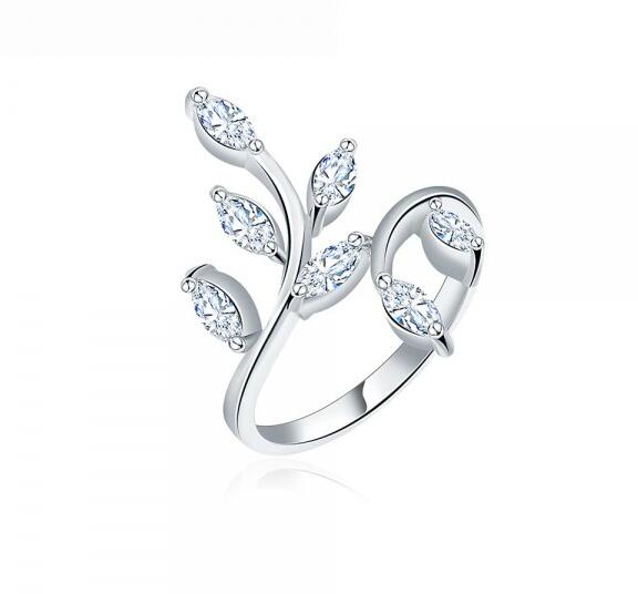 Anillo en baño de oro blanco de 18 quilates, diseño de enredadera con incrustación de cristales en color blanco.