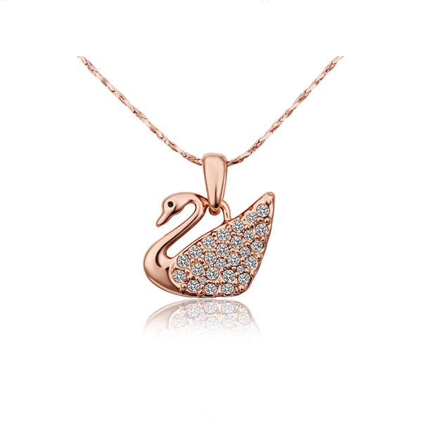 Dije con cadena en baño de oro rosa de 18 quilates, diseño de cisne con incrustaciones de cristales en colores blanco y negro.
