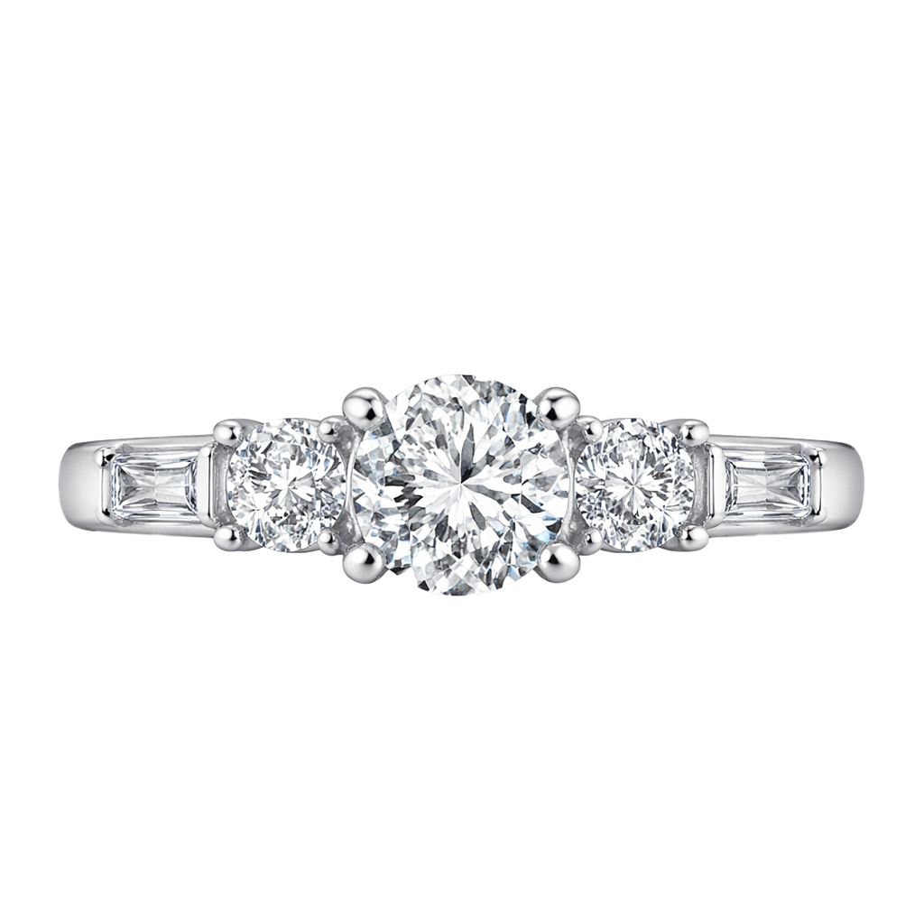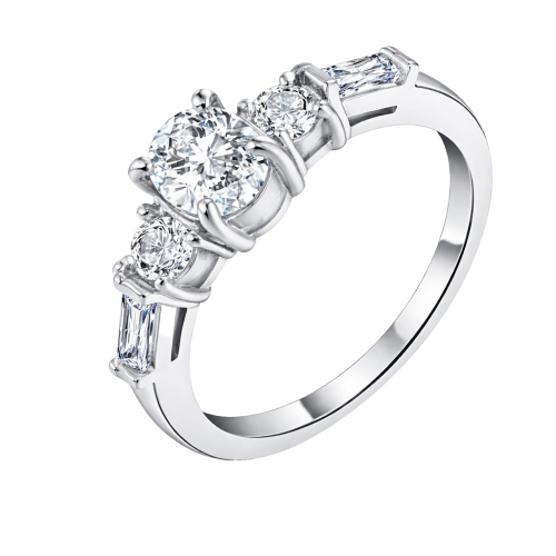 Anillo en baño de oro blanco de 18 quilates, fino diseño, con cristal blanco corte brillante e incrustaciones de cristales en color blanco.