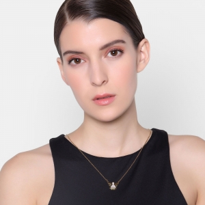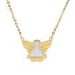 Dije con cadena en acero inoxidable color amarillo, diseño de ángel con concha nácar