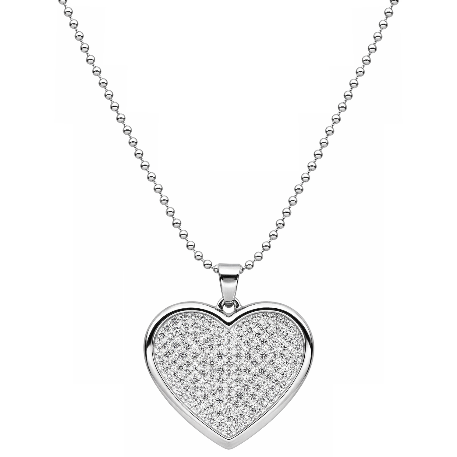 Dije con cadena en acero inoxidable, dise�o de coraz�n con incrustaciones de cristales blancos.