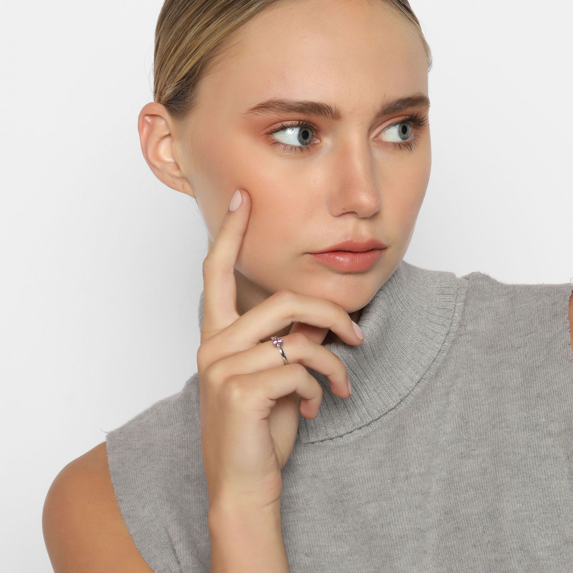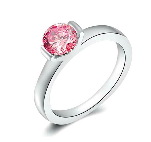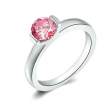 Lindo anillo, en baño de oro blanco de 18 quilates, fino diseño, con cristal rosa corte brillante.