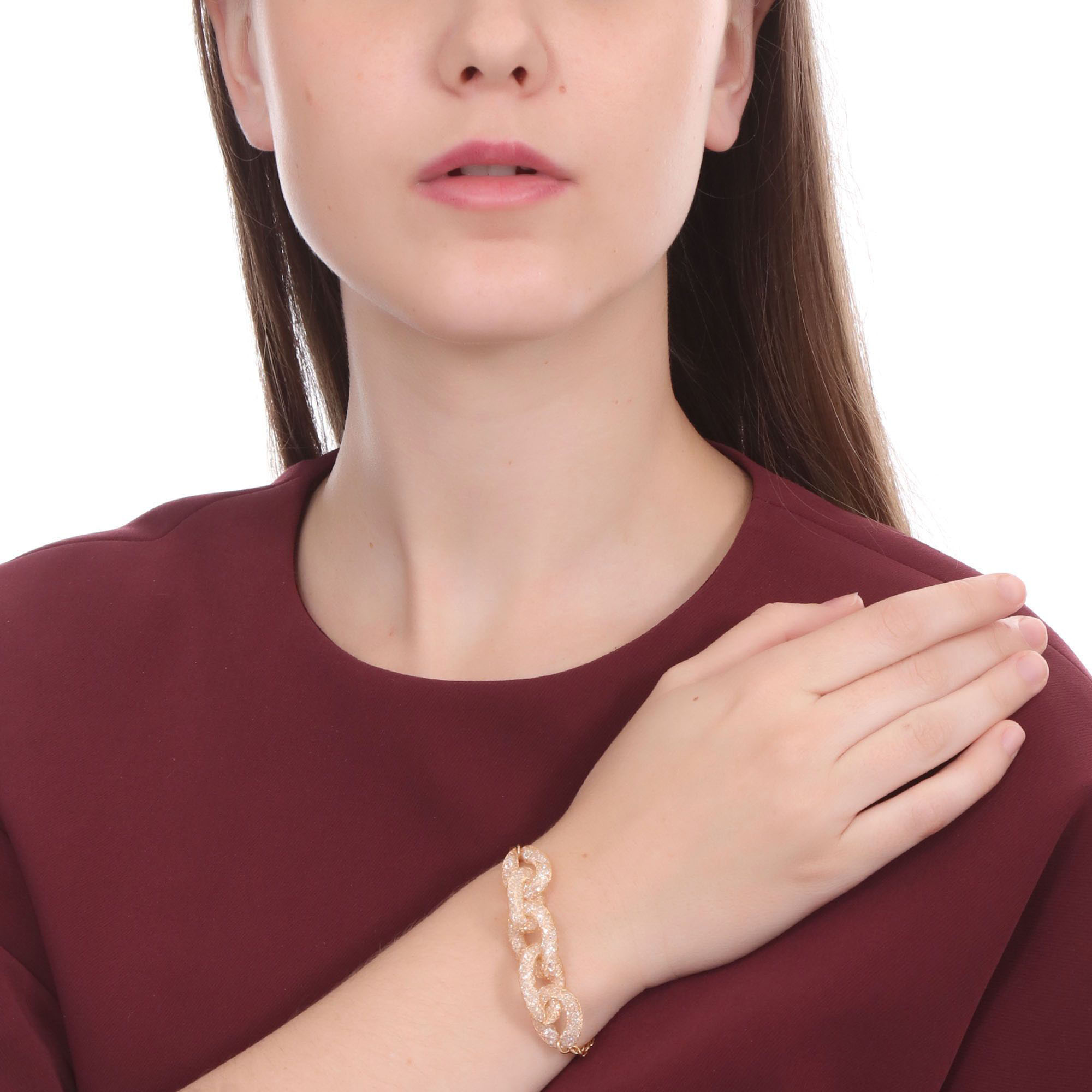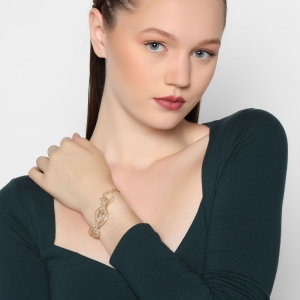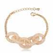 Pulsera en baño de oro amarillo de 18 quilates y malla en color dorado, diseño de eslabones, con cristales en color blanco dentro.