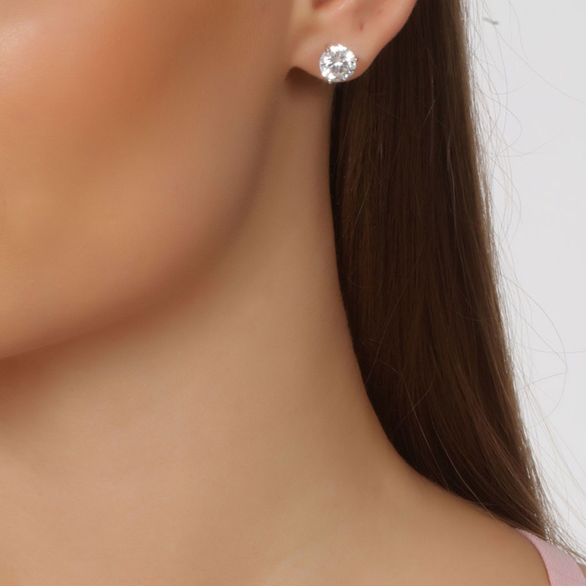 Aretes en baño de oro blanco de 18 quilates, fino diseño, con incrustación de cristal corte brillante, en color blanco.