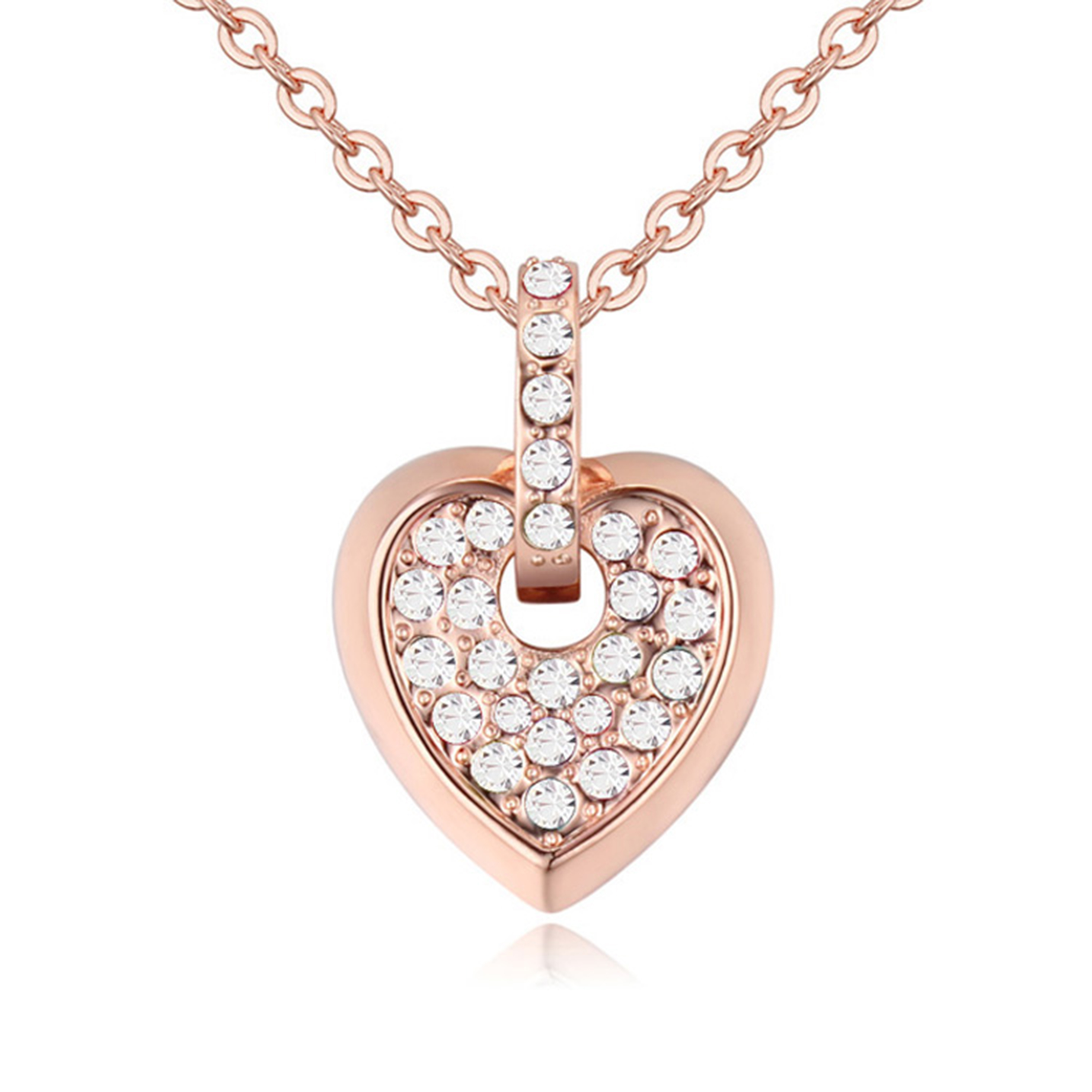 Dije con cadena en baño de oro rosa de 18 quilates, diseño de corazón con incrustaciones de cristales blancos.