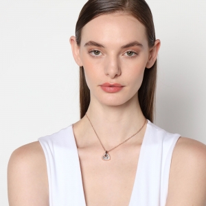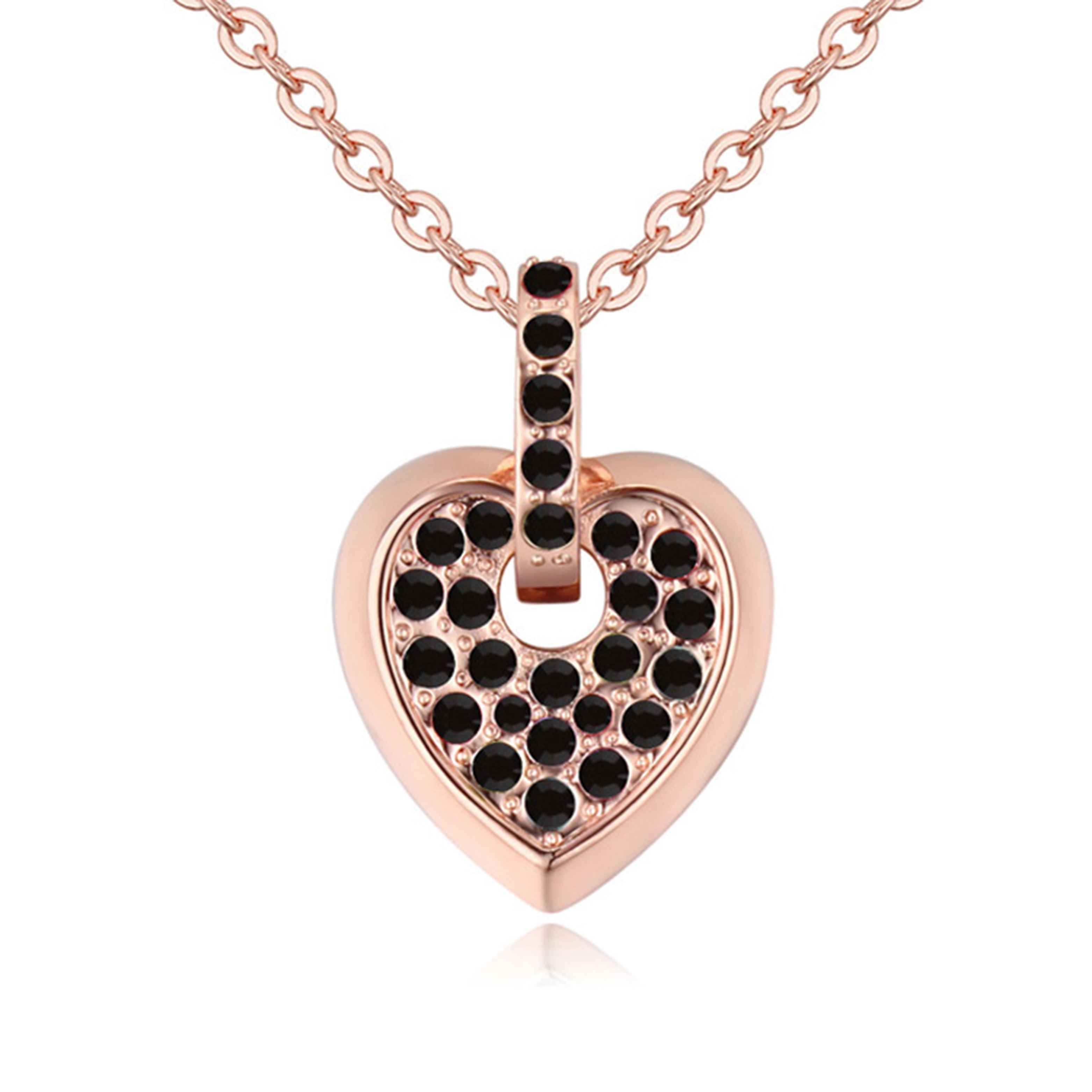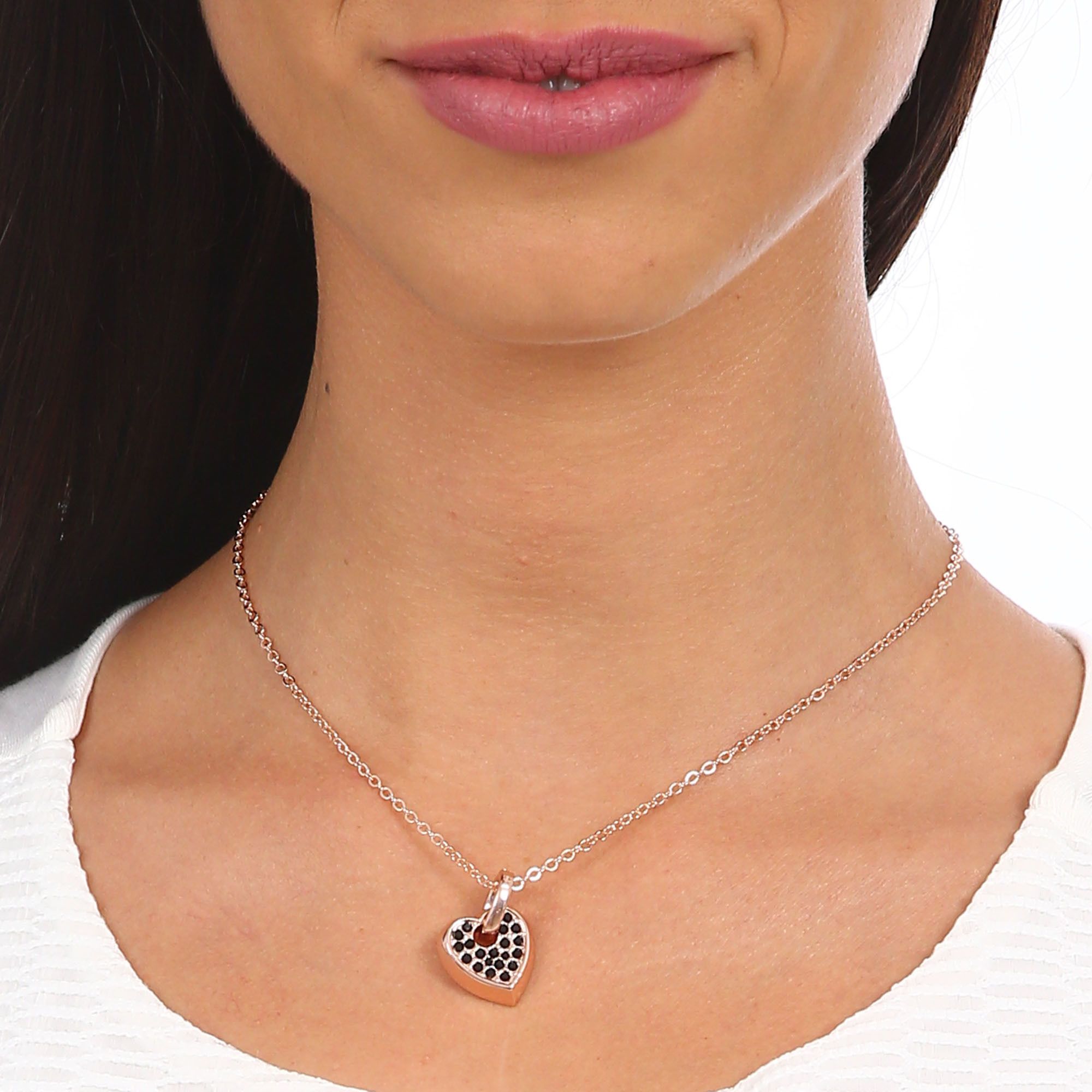 Dije con cadena en ba�o de oro rosa de 18 quilates, dise�o de coraz�n con incrustaciones de cristales en color negro.