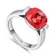 Bello anillo ajustable, en baño de oro blanco de 18 quilates, fino diseño, con incrustacion cristal en color rojo, corte oval..