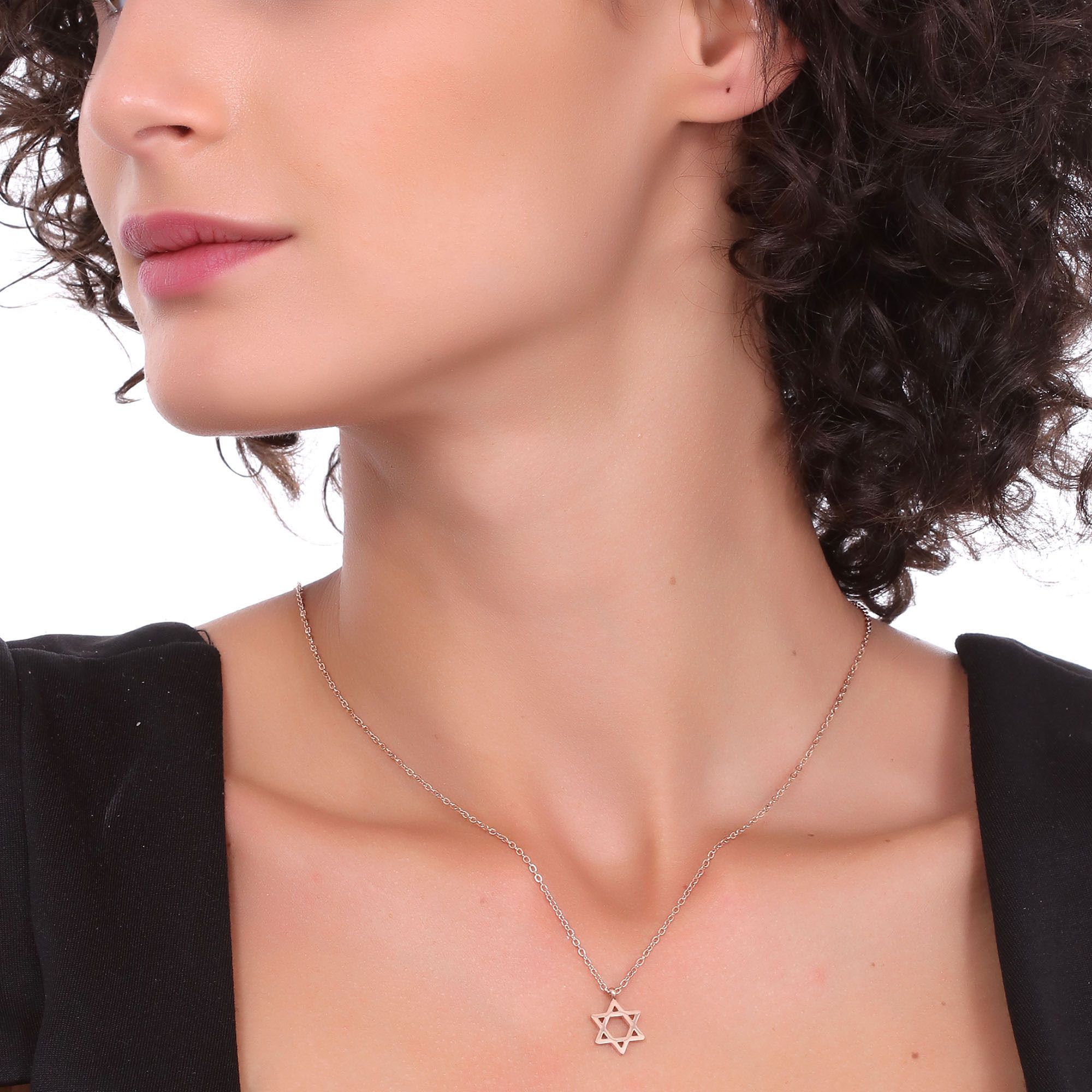 Dije con cadena en baño de oro rosa de 18 quilates, diseño "Estrella de David".