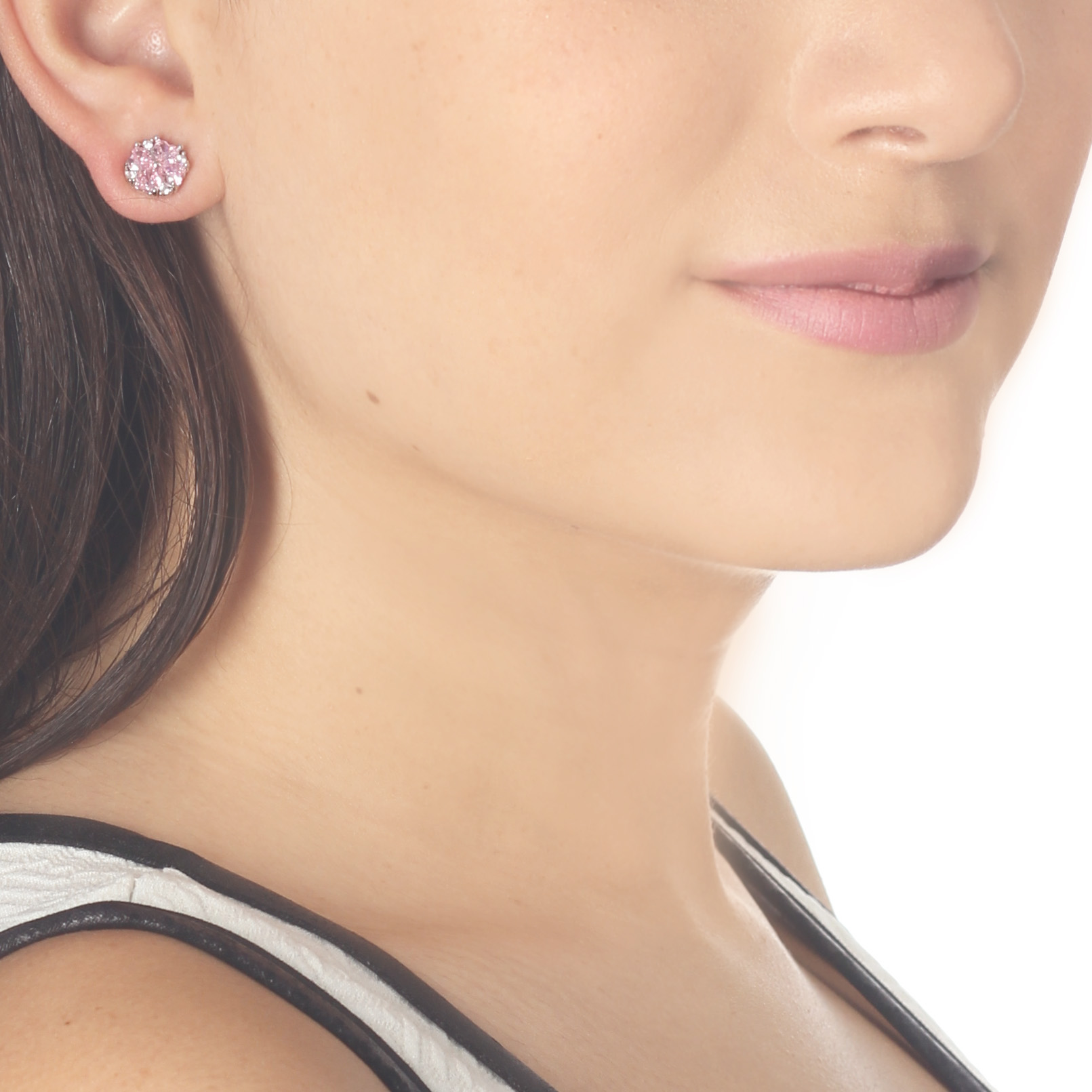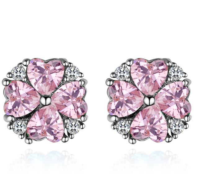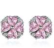 Lindos aretes, en baño de oro blanco de 18 quilates, diseño de trébol, formado por corazones de cristal rosa e incrustaciones de cristales blancos.