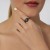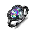 Tierno anillo cerámico color negro, diseño de corazón, con cristal aurora boreal, corte brillante e incrustación de cristal en color negro y tornasol.