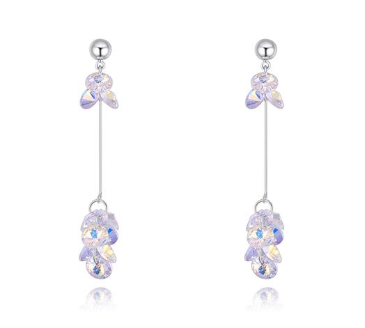 Lindos Pendientes, en baño de oro blanco de 18 quilates, elegante diseño, estilo cascada, con cristales en color tornasol. Fabricado en una estructura de aleación de platino con rodio sin níquel.