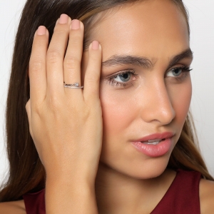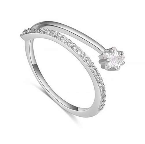 Delicado anillo ajustable, en baño de oro blanco de 18 quilates,