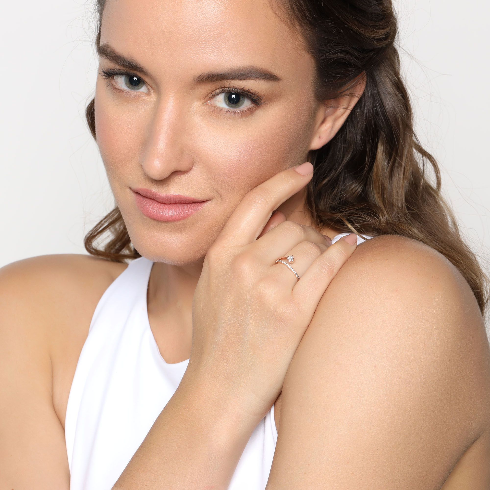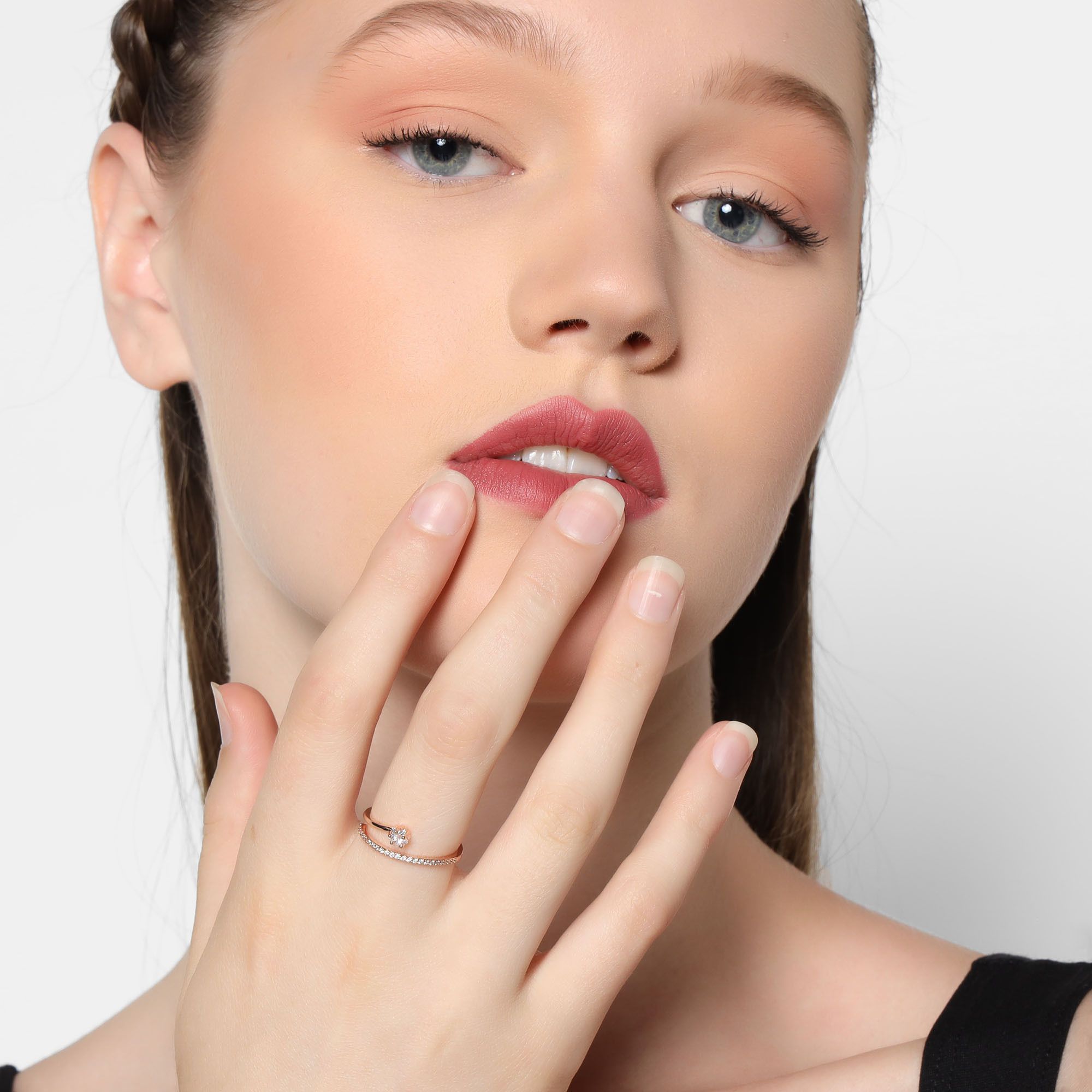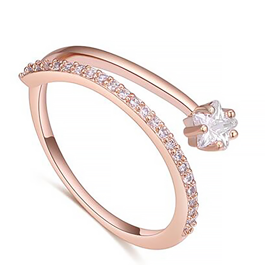 Precioso anillo ajustable, en baño de oro rosa de 18 quilates, diseño de estrella fugaz, con estrella de cristal blanco e incrustaciones de cristales en color blanco.