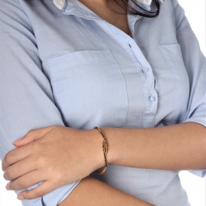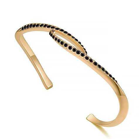Fina pulsera, en baño de oro amarillo de 18 quilates, diseño entralazado, con incrustaciones de cristales en color negro.