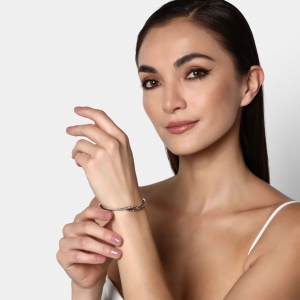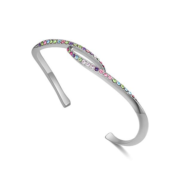 Fina pulsera, en baño de oro blanco de 18 quilates, diseño entrelazado, con incrustaciones de cristales multicolor.