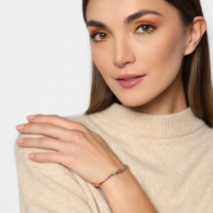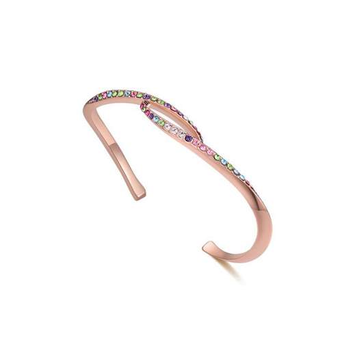 Linda pulsera, en baño de oro rosa de 18 quilates, diseño entrelazado, con incrustaciones de cristales multicolor.