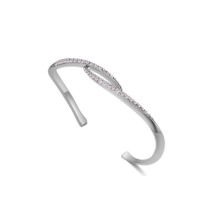 Linda pulsera, en baño de oro blanco de 18 quilates, diseño entrelazado, con incrustaciones de cristales en color blanco.