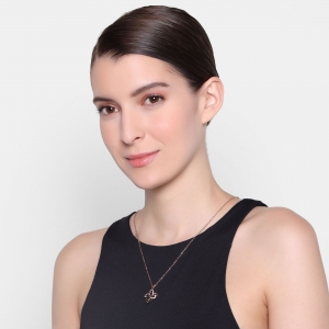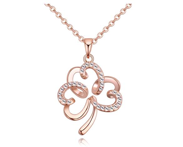 Dije con cadena en baño de oro rosa de 18 quilates, diseño de trébol con incrustaciones de cristales blancos.