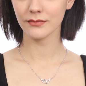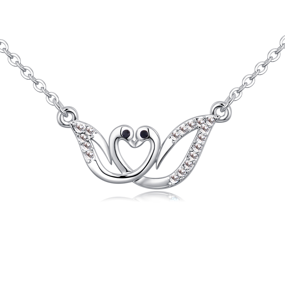Collar en baño de oro blanco de 18 quilates, diseño de cisnes con cristales en color blanco.
