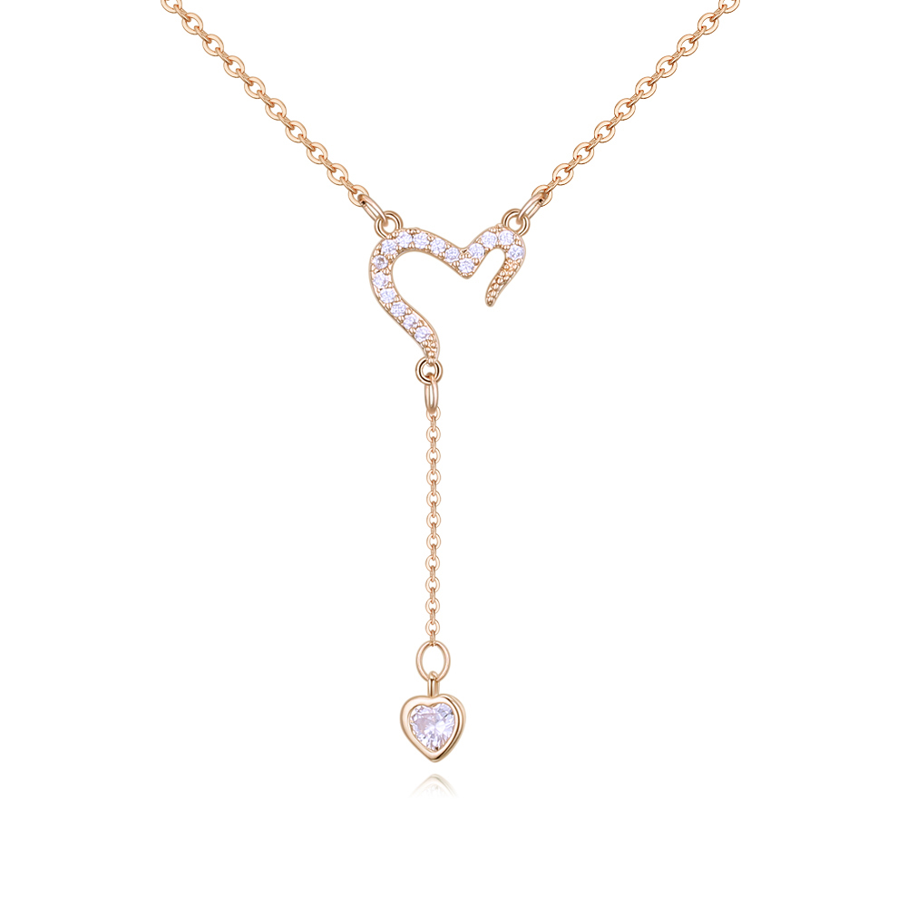 Collar en baño de oro amarillo de 18 quilates, diseño de pequeños corazones con incrustaciones de cristales en color blanco.