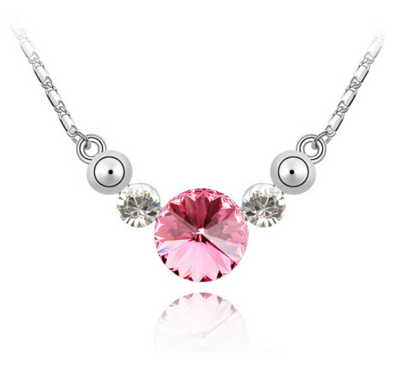 Origina dije con cadena en Baño de oro blanco de 18 quilates, diseño de pequeños aros con incrustaciones de cristales en color blanco.