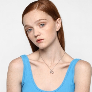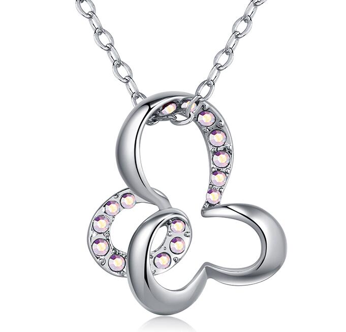 Dije con cadena en baño de oro blanco de 18 quilates, diseño de mariposa con incrustación de cristales en color tornasol.