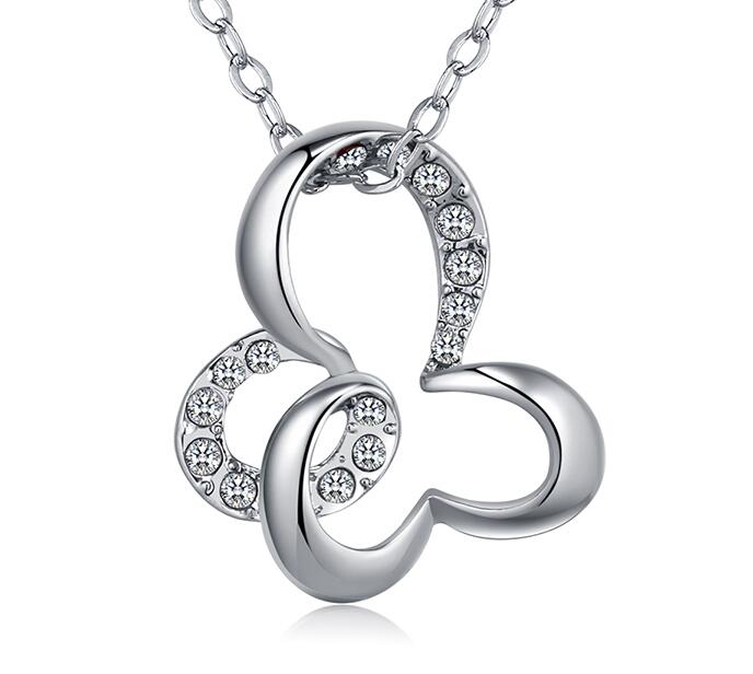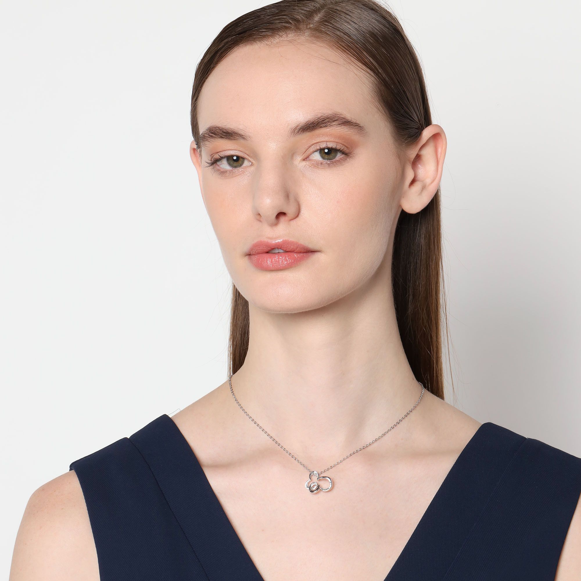 Dije con cadena en baño de oro blanco de 18 quilates, diseño de mariposa con incrustación de cristales en color blanco.