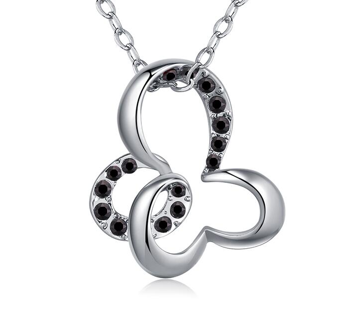 Dije con cadena en baño de oro blanco de 18 quilates, diseño de mariposa con incrustación de cristales en color negro.
